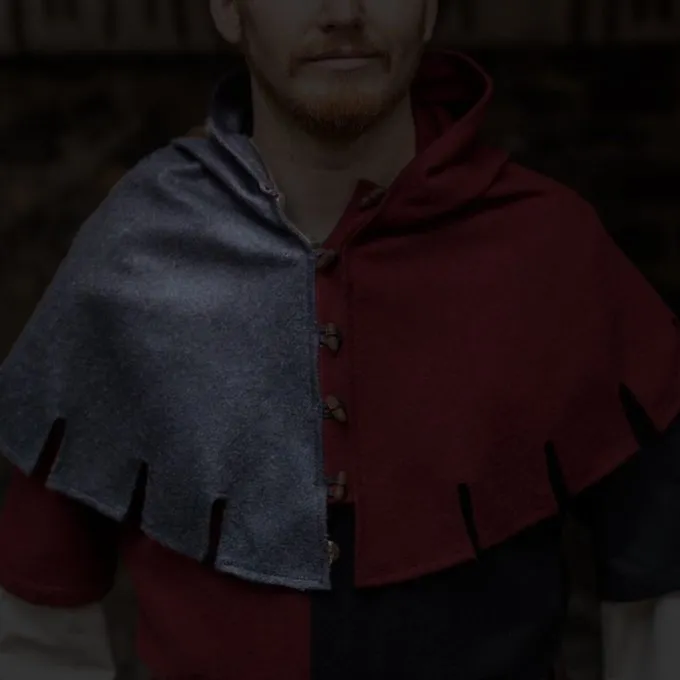 Découvrez la nouvelle collection Mi Parti de Burgschneider! Le chaperon dangereuse se compose de deux moitiés vendues séparément. De cette façon, vous pouvez assembler un Hood MI Parti à vos souhaits. Fixez le côté gauche vers le côté droit avec les boutons. Si vous êtes dans différents groupes médiévaux et de reconstitution médiévaux, vous pouvez faire beaucoup de combinaisons de couleurs différentes avec quelques côtés gauche et droit. Le capot est un vêtement porté dans l’Europe médiévale entre les XIIe et 14e siècles. À l’origine, les agriculteurs le portaient principalement contre le froid et la pluie, mais plus tard, il est devenu un vêtements de mode et il a pris des formes spéciales. Le chaperon « dangereuse » est composé d’un tissu en laine épais avec une couleur profonde, adaptée à toutes les conditions météorologiques. Du 11e au XVIe siècle, le style de robe « Mi-parti » (partiellement coloré) était populaire, reliant deux tissus de couleur différents au milieu. L’effet est un contraste de couleur qui crée souvent un aspect dramatique. Au Moyen Âge, MI-Parti était un style important parmi les capes, les tabards, les robes, les pantalons et les robes. Les premiers exemples de ce style remontent aux 9e et au 10e siècle, où les couleurs divisées ont été utilisées sur les jambes et les chaussures. Par exemple, les bottes étaient une demi-couleur et la moitié de l’autre couleur. Dans le moyen moyen-âge, le style Mi Parti a gagné en popularité à mesure que le symbolisme de couleur dans les vêtements est devenu plus important. Les couleurs représentaient souvent un certain statut ou une certaine connexion. Le style est devenu plus courant aux XIIIe et 14e siècles lorsque de nombreux hommes, en particulier des vassaux, ont imité les armoiries de leurs seigneurs féodaux. Vers la fin du XVIe siècle, le style a progressivement diminué.