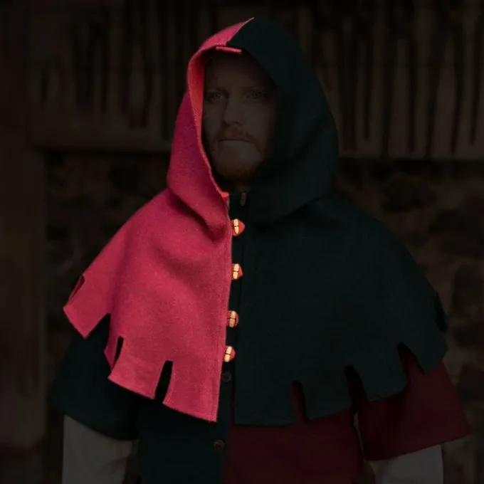 Découvrez la nouvelle collection Mi Parti de Burgschneider! Le chaperon dangereuse se compose de deux moitiés vendues séparément. De cette façon, vous pouvez assembler un Hood MI Parti à vos souhaits. Fixez le côté gauche vers le côté droit avec les boutons. Si vous êtes dans différents groupes médiévaux et de reconstitution médiévaux, vous pouvez faire beaucoup de combinaisons de couleurs différentes avec quelques côtés gauche et droit. Le capot est un vêtement porté dans l’Europe médiévale entre les XIIe et 14e siècles. À l’origine, les agriculteurs le portaient principalement contre le froid et la pluie, mais plus tard, il est devenu un vêtements de mode et il a pris des formes spéciales. Le chaperon « dangereuse » est composé d’un tissu en laine épais avec une couleur profonde, adaptée à toutes les conditions météorologiques. Du 11e au XVIe siècle, le style de robe « Mi-parti » (partiellement coloré) était populaire, reliant deux tissus de couleur différents au milieu. L’effet est un contraste de couleur qui crée souvent un aspect dramatique. Au Moyen Âge, MI-Parti était un style important parmi les capes, les tabards, les robes, les pantalons et les robes. Les premiers exemples de ce style remontent aux 9e et au 10e siècle, où les couleurs divisées ont été utilisées sur les jambes et les chaussures. Par exemple, les bottes étaient une demi-couleur et la moitié de l’autre couleur. Dans le moyen moyen-âge, le style Mi Parti a gagné en popularité à mesure que le symbolisme de couleur dans les vêtements est devenu plus important. Les couleurs représentaient souvent un certain statut ou une certaine connexion. Le style est devenu plus courant aux XIIIe et 14e siècles lorsque de nombreux hommes, en particulier des vassaux, ont imité les armoiries de leurs seigneurs féodaux. Vers la fin du XVIe siècle, le style a progressivement diminué.