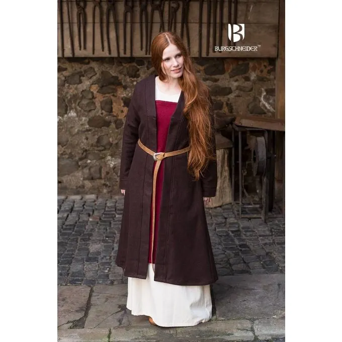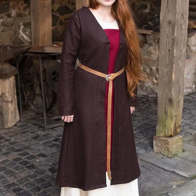 Le manteau Viking Birka Aslaug est une interprétation des trouvailles d’une tombe féminine à Birka (Suède). Comme il n’y a pas de trouvailles complètes, les formes du manteau ne sont que des reconstitutions historiques. Le manteau de laine à manches longues atteint la moitié du mollet et n’a pas de boutons ou de boucles. Les manteaux comme ceux-ci ont été portés avec un péroné, ceux-ci sont disponibles séparément.