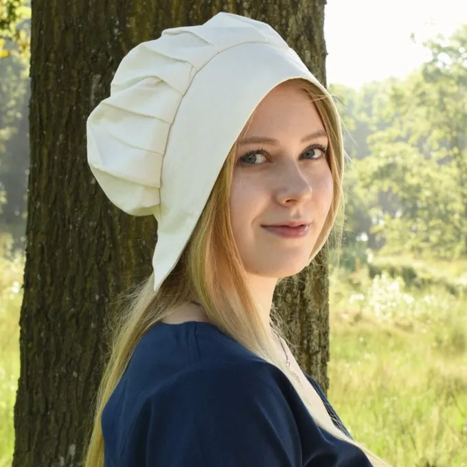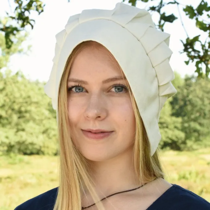Comme celui-ci ont été bonnets portés par les dames pendant des siècles, du Moyen Age au XVIIIe siècle. Il convient à médiéval, Renaissance, Tudor et au début de reconstitution moderne de l’âge d’or et des périodes similaires. Contrairement à ce que la plupart des films montrent, les femmes portaient toujours couvre-chef en public. Seules les filles célibataires et les prostituées ont traversé la vie avec la tête découverte. En particulier, les femmes de la bourgeoisie et la classe ouvrière portaient ces casquettes, comme les femmes paysannes, les citoyens, les patronnes, les vendeurs de marché et similaires. Caps ont également été pratique, le tissu protégé les cheveux de durt pendant le travail lourd et sale. bonnets plissés font toujours partie de divers costumes traditionnels en Europe occidentale et orientale et aux États-Unis aujourd’hui.