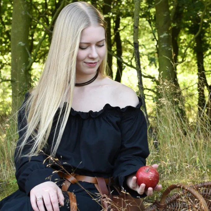 Ce chemisier élégant à épaules dénudées est fabriqué dans un coton confortable et légèrement cousu. Les manches et le décolleté sont pourvus d’élastiques, ce qui les rend beaux et volumineux. Ce chemisier peut être combiné avec une jupe, un corset ou une ceinture. En combinaison avec une jupe de la même couleur, un chemisier et une jupe peuvent être portés comme une robe. Ce chemisier est parfait pour la reconstitution médiévale et la renaissance et les costumes de pirate. Avec ce chemisier, vous créez également une belle tenue pour le GN, le cosplay et les festivals.