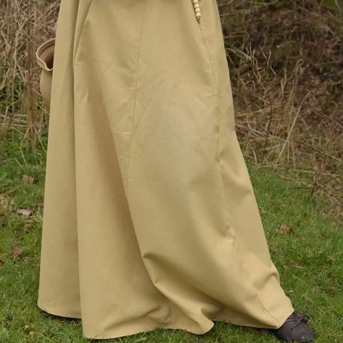 Cette jupe médiévale de couleur uniforme peut être utilisée pour créer différents costumes de reconstitution et de costumes de GN. La jupe a un cordon avec des perles en bois autour de la taille, elle peut donc être facilement ajustée à votre taille et est très agréable à porter. C’est aussi une jupe parfaite pour les festivals avec des poches pratiques et une coupe longue et élégante et évasée.