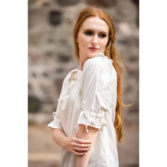 Cette blouse à manches mi-longueur et est fait de coton. Les manches et le cou sont bordées élastique pour la blouse peut être porté avec les épaules nues. La blouse est disponible dans les tailles S à XXXL dans les couleurs noir, vert, rouge, blanc et crème.