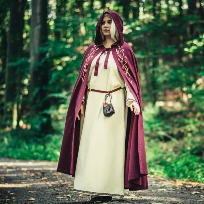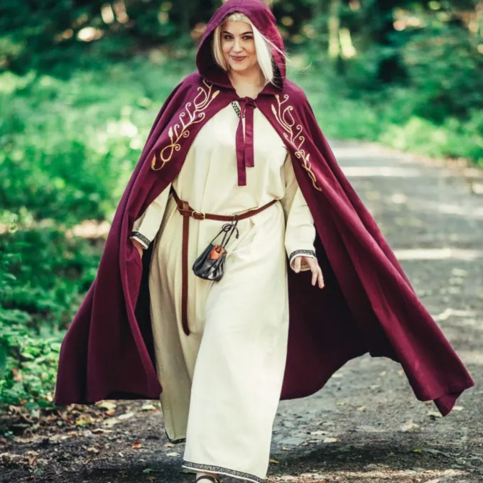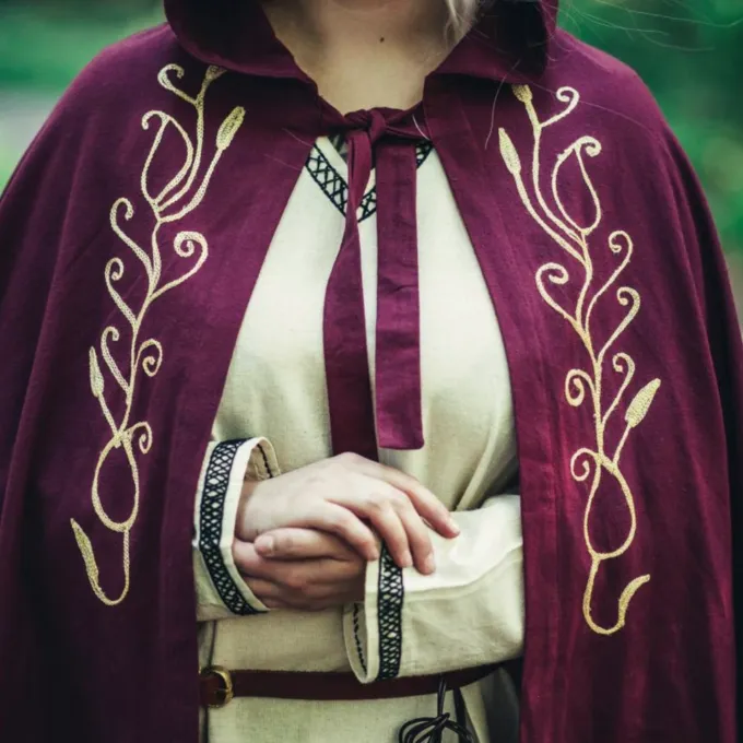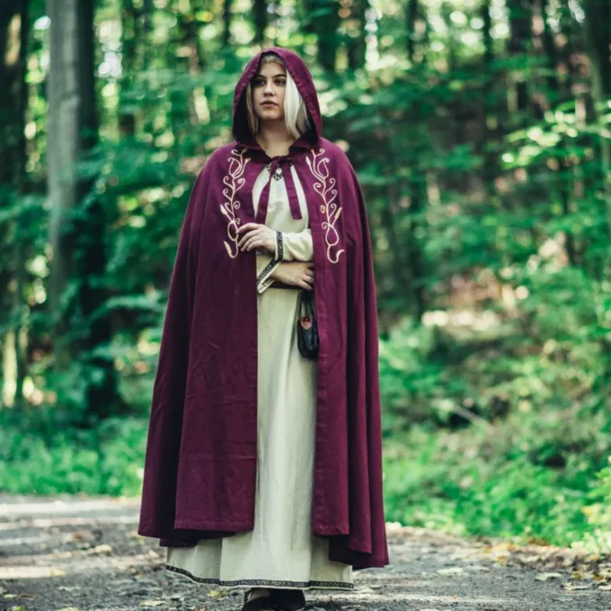 Cette cape élégante offre une belle protection contre le vent et les soirées fraîches au printemps, en été et début de l’automne. Un grand atout pour votre fantaisie ou costume historique! Le manteau a un motif de vigne organique brodé sur les deux côtés. Vous pouvez fixer le manteau avec le bouton, pour une usure confortable. Le manteau a un capot court.