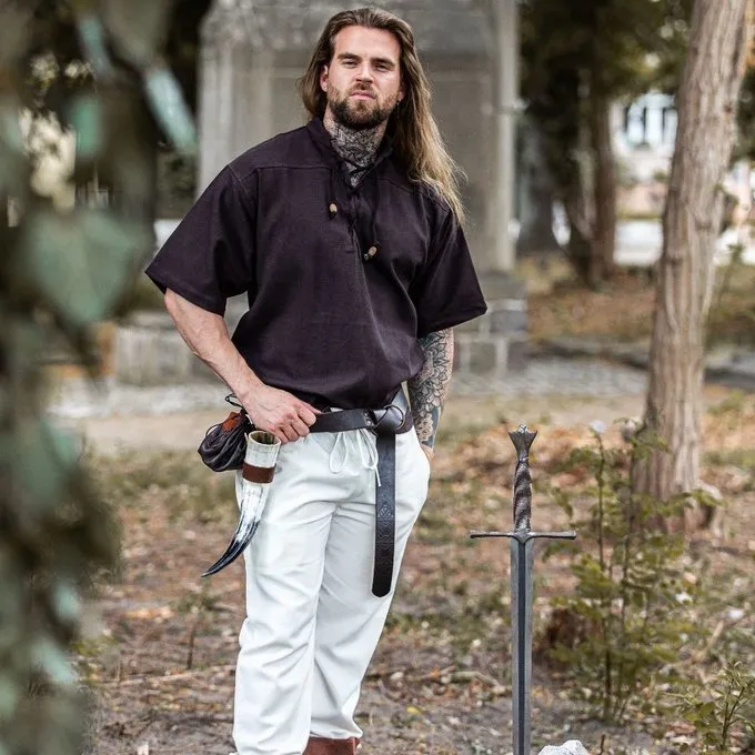 Chemise médiévale universelle adaptée à d’innombrables tenues. Il a des manches courtes si parfaites pour les jours chauds du festival d’été! Cette grande pièce peut facilement être portée avec un pantalon d’époque. Il peut être porté à la fois pour les costumes médiévaux, pirates et premiers modernes. Cette chemise est également très adaptée à l’utilisation comme un maillot pour, par exemple, des tenues Landsknecht ou Tudor.