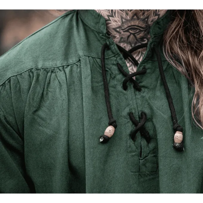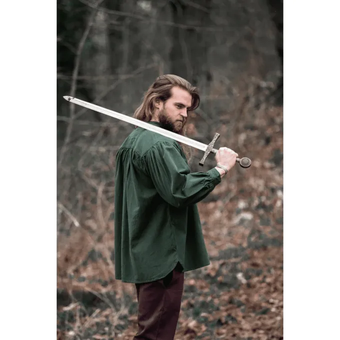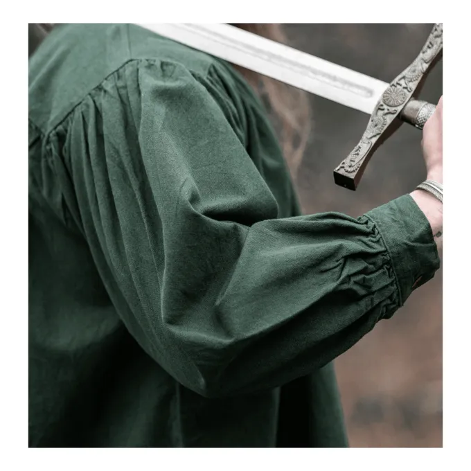 Chemise médiévale universelle adaptée à d’innombrables tenues. Cette grande pièce peut facilement être portée sous un pantalon d’époque. Il peut être porté pour les costumes médiévaux et modernes. Cette chemise est également très adaptée à l’utilisation comme un maillot pour, par exemple, des tenues Landsknecht ou Tudor.