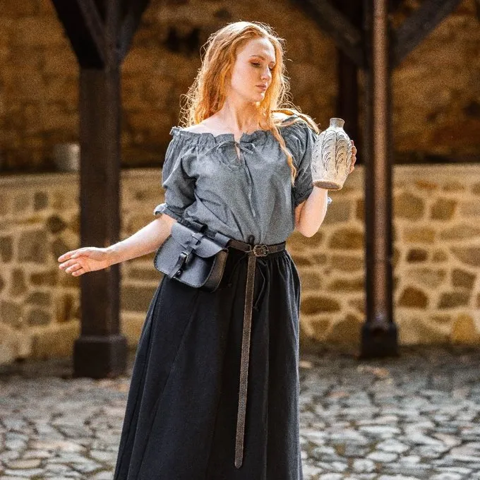 Cette jupe est faite d’un mélange coton-lin lourd et la taille a une bande élastique pour une bonne taille raccord. Il est disponible dans les couleurs noir, crème, vert, brun et rouge dans les tailles SM, L-XL et XXL.