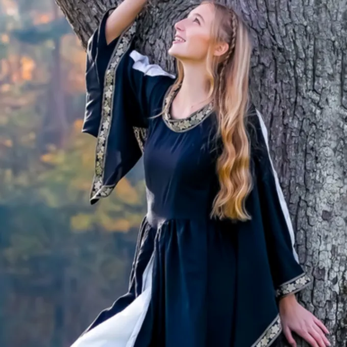 Cette belle robe est digne d’un noble. Les détails élégamment brodés sur les manches et le col donnent la robe un look royal. D’autres détails royaux sont les splits blancs dans les manches de trompette large et le devant de la robe.