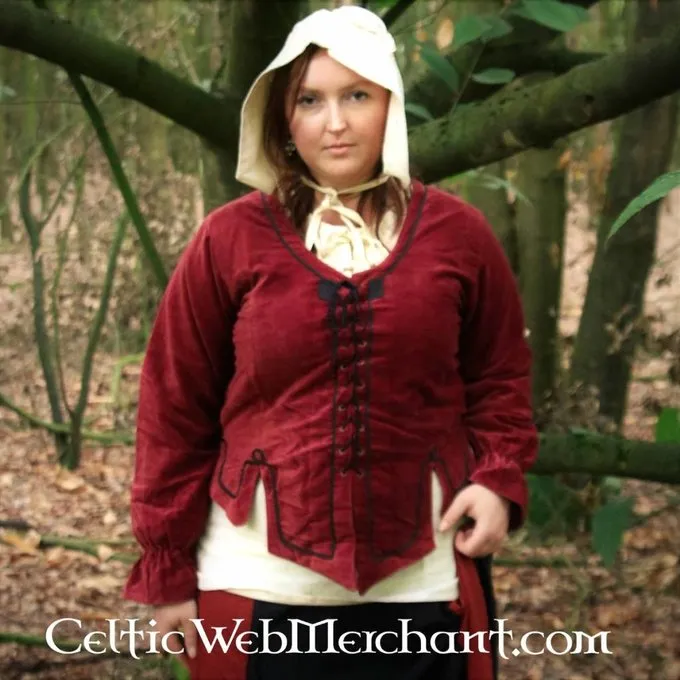 Cette veste est faite de velours noir. Le devant et les manches sont attachés avec des cordes. Les bords sont décorés avec un fil noir. Il est disponible dans les tailles S jusqu’à XXXL.