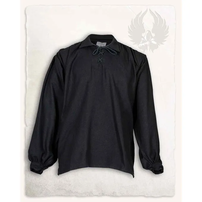 La chemise en coton Jonathan a un beau col en coupe et une fermeture de bouton avec des poignets. Le tissu de coton robuste et l’ajustement confortable rendent cette chemise parfaite pour les journées d’été chaudes à l’extérieur. Idéal pour le larp et la reconstitution, cette chemise est la base parfaite pour un costume médiéval.
