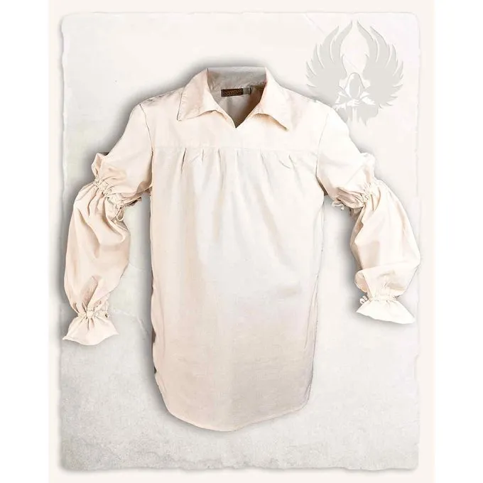 La chemise Tilly est faite selon les modèles historiques. La large coupe somptueuse des manches peut être ajustée en deux points avec des lacets: au coude et au poignet. Attachez-les mais vous voulez obtenir une chemise d’été pour des températures chaudes. Le coton léger est durable, doux au toucher et transporte l’humidité loin du corps, ce qui le rend bien adapté à l’usure comme un maillot. Le large collier et les quillings sur les poignets permettent d’être utilisés pour une grande variété de personnages – que ce soit un paysan simple, un pirate, un marchand, un voyou ou un noble: cette chemise est une base parfaite pour de nombreux costumes. Parfait pour un Gathering ou un festival médiéval.