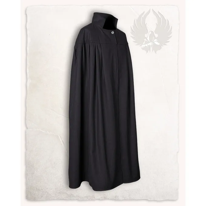 Cette cape convient à la reconstitution, au cosplay et à la larp. La cape est faite de laine. Il est large et a un col debout. La cape peut être fermée avec le bouton à l’avant. Il a une scission à l’arrière, de sorte que le porteur a une liberté de mouvement supplémentaire lors des mouvements actifs.