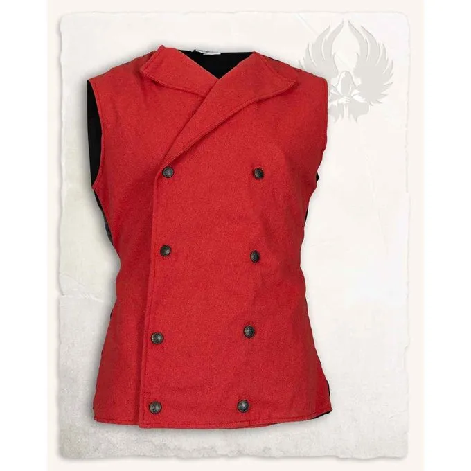 Hamish est un simple gilet qui peut être utilisé pour de nombreux costumes. Les marins, les aventuriers, les voyageurs, mais aussi les marchands, les voyous et les propriétaires auront l’air fringants dans ce gilet. Parfait pour un Gathering ou un festival médiéval. Il se ferme avec deux fermetures de bouton à l’avant et la ceinture de coton à l’arrière peut être utilisée pour ajuster la taille du gilet. L’arrière du gilet est fait de satin.