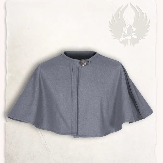 Ce manteau court convient à la reconstitution, au cosplay et à la larp. Le manteau est en coton. Ce genre de cape était souvent porté par les pèlerins au Moyen Âge. La cape a une fermeture à bouton.