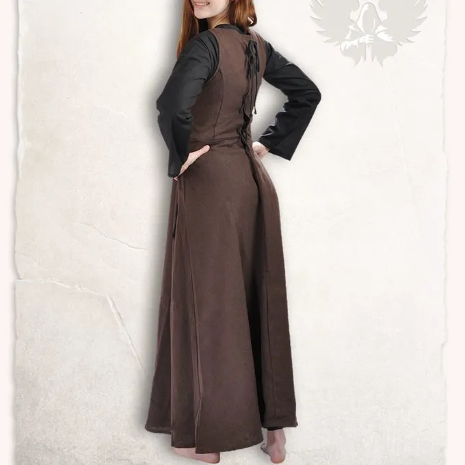 Cette robe convient à la reconstitution, au cosplay et à la larp. La robe est faite de toile, ce tissu rend la robe supplémentaire solide. Il a un design assez simple, mais le laçage donne à la robe un excellent regard. Le laçage assure également un ajustement parfait pour son porteur. En raison de son design plus simple, cette robe convient à plusieurs bases pour les costumes. Vous pouvez donc faire l’expérience de «la vie quotidienne» sur un marché ou dépeignez un guerrier avec cette robe.
